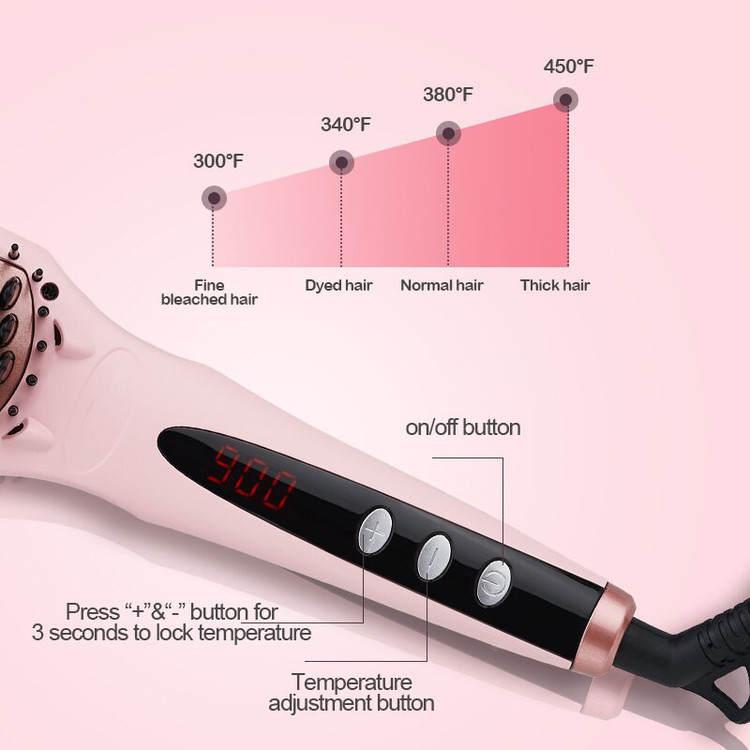 تکنولوژِی MCH در پخش حرارت و جلوگیری از هرگونه سوختگی تنظیم حرارت از 300 تا 985 درجه فارنهایت روکش تورمالین/ سرامیک پوشش محافظ انتهای دندانه ها xx تکنولوژی تولید یون دائم 50 وات قدرت طراحی خوش دست و ارگونومیک قابلیت چرخش سیم تا 360 درجه