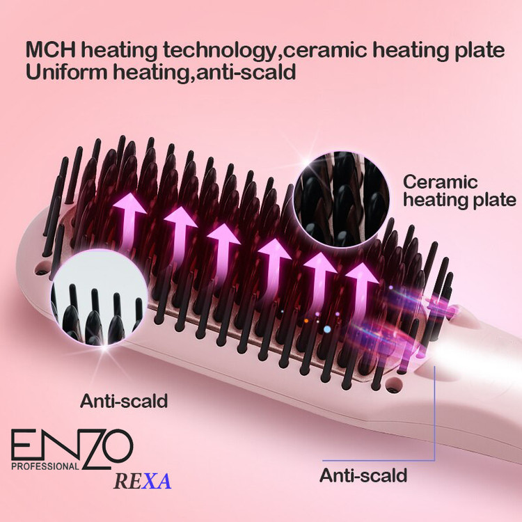 برای صافکردن موها میتوان از روشهای مختلفی مانند اتو مو یا سشوار استفاده کرد. یکی از این روشهای نسبتا جدید برسهای حرارتی هستند. برس حرارتی انزو مدل رکسا، دارای دندانه های سرامیک کراتین است و هنگام شانهکردن، موها از میان دندانهها عبور کرده و در تماس با سطح داغ قسمتهای سرامیکی صاف میشوند. سرامیک ضمن اینکه حرارت را به شکل یکنواخت پخش میکند، از موها محافظت بیشتری به عمل میآورد. نقطه قوت این برس نسبت به همنوعان خود این است که روکش مخصوص روی این صفحات با القای کراتین به سطح و ساقه مو با مراقبت بیشتری آن ها را صاف کرده و کوتیکول مو را به خوبی پوشش می دهد. صافکردن موها با برس حرارتی سریع و راحت است و کسانی که موهای بلند و متوسطی دارند، میتوانند از این روش برای صافکردن موهای خود استفاده کنند. این برس حرارتی را می توانید از 300 تا 985 درجه فارنهایت با توجه به جنس و نوع موهای خود تنظیم کنید. ویژگی و فناوری تولید یون دائمی در برس حرارتی انزو مدل رکسا موجب می شود الکتریسیته ساکن مو خنثی شود. درنتیجه، وز بودن ضخیم ترین نوع مو نیز از بین می رود و موهایی ابریشمی خواهید داشت. روکش تورمالین/سرامیک شانه برقی انزو مدل رکسا کمک می کند دستگاه به سرعت داغ شود تا بتوانید در زمانی کمتر از 4 دقیقه به راحتی موهایتان را صاف کنید. این دستگاه در حالت بیکاری، به طور اتوماتیک، پس از 60 دقیقه خاموش خواهد شد. برس حرارتی حرفه ای انزو مدل رکسا پوششی در انتهای دندانه های شانه به شکل محافظ دارد تا از ریشه مو و پوست سر در برابر گرما و حرارت محافظت کند. سیم این دستگاه می تواند 360 درجه بچرخد تا بر اثر کار بسیار له نشود. برس حرارتی حرفه ای انزو مدل رکسا حدود 50 وات حرارت دارد و در زمانی کمتر از 30 ثانیه به طور کامل داغ می شود. همچنین، طراحی ارگونومیک دارد و بسیار راحت و خوش دست است. برس حرارتی انزو یکی از بهترین نمونه های برس حرارتی برای حالت دهی به موهایتان و خشک کردن موهای مرطوب است. البته موهایتان را درخشان و صاف نیز می کند. در این مدل از تکنولوژی MCH استفاده شده است که باعث انتقال یک دست و یکسان حرارت از صفحه کف تا لبه دندانه های برس میشود.