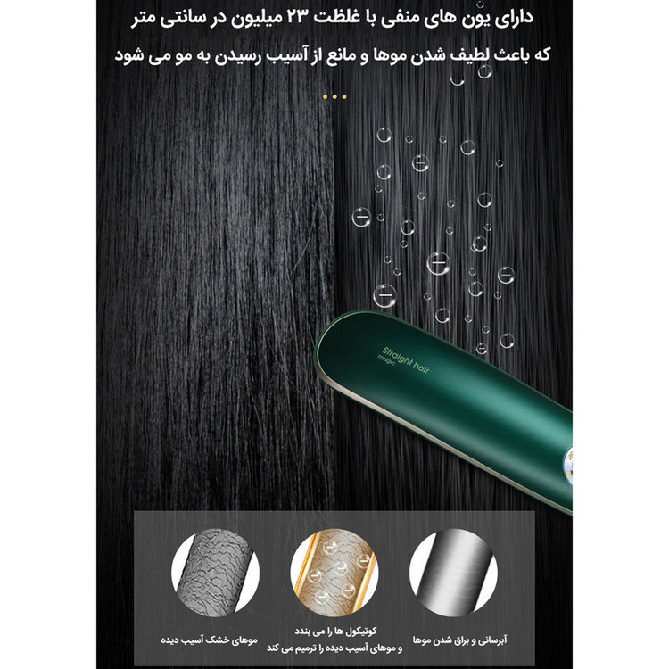 به دلیل طراحی دندان های پهن و متراکم می توانید موهای خود را در چند دقیقه برس بزنید که با اتوی سنتی متفاوت است. این اتو مو حتی می تواند حجم مو را افزایش دهد. گرمایش فوق العاده سریع: اتو مو HS-8006 را می توان در مدت زمان ثبت شده بدون اتلاف وقت تا دمای مورد نظر گرم کرد. موهای خود را فورا و بع سادگی صاف کنید و زمان لازم برای حالت دادن به موهای خود را کاهش دهید.اگرچه برس موی صاف را می توان تا دمای 400 درجه فارنهایت گرم کرد، فناوری ضد جوش و نوک برس مقاوم در برابر حرارت از پوست سر شما در برابر گرما محافظت می کند. مناسب برای انواع مو: برس مو صاف کننده HS-8006 برای انواع مو مناسب است. به دلیل دامنه دمایی گسترده ای که دارد، می توانید از این شانه صاف برای موهای ضخیم و مجعد، موهای سفید شده نازک و هر چیز دیگری استفاده کنید.