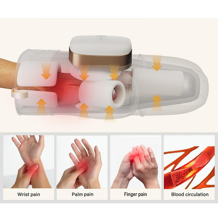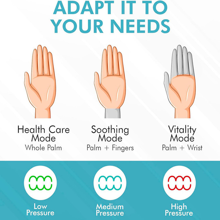 ماساژ عمیق مچ دست ،کف دست تا انگشتان را برای بهبود گردش خون و آرامش عضلات ارائه میدهد. این ماساژور بسیار مناسب افرادی است که به علت شغل خود مدت زمان طولانی از دستهای خود استفاده می نمایند مانند تایپیست ها، افرادی که با کامپیوتر کار میکنند، رانندگان و همچنین افرادی که از آرتروز دست و مچ رنج میبرند . قبل از استفاده دستگاه را به مدت کافی شارژ نمایید. میتوان از شارژرهای موبایل استفاده نمایید.
