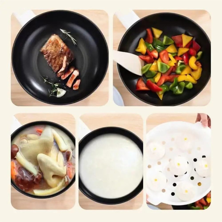 تابه و پخت و پز تریکس دارای طراحی منحصر به فرد دو طبقه و دارای پیچ تنظیم روی دسته آن میباشد. بسیار سبک و قابل حمل با توانایی انتقال سریع گرما، نه تنها برای پختن سوپ، فرنی، بلکه برای تهیه غذاهای سرخ شدنی و بخارپز را دارا می باشد. بسیار پرکاربرد مناسب منزل و مسافرت و هتلها و خوابگاههای دانشجویی و غیره میباشد علاوه بر این، روی درب، یک سوراخ دریچه ای نیز وجود دارد که به گردش بهتر بخار در دمای بالا کمک می کند و ایمنی در حین استفاده را تضمین می کند. از طرف دیگر رابط اتصال برق تعبیه شده روی دسته نیز ضد آب است و می توانید به راحتی محصول را راحت تر تمیز کنید. این محصول از انتهای دسته توسط کابل به برق شهری متصل میشود