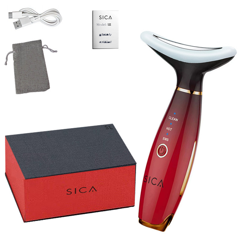 دستگاه جوانسازی سیکا(SICA) مدل SE طراحی شده در جهت لیفت صورت و گردن، که برای جوانسازی پوست صورت و گردن به کار میرود و تاثیر چشمگیری در مدت کوتاه دارد. اولا حالت ماساژورMSG که میتواند در لایههای عمیق پوست جایی که کلاژن الاستین شکل میگیرند موثر باشد و فرایند جوانسازی طبیعی پوست را سرعت دهد. این دستگاه چندمنظوره دارای نورها بر اساس تکنولوژی های جدید نوری است که میتواند لکه را کم کند، به پوست حالت ارتجاعی دهد. قرمزی و کم و مک را رفع کند و چربی پوست را تنظیم نماید همچنین در کاهش اثرات زخم روی پوست و رفع خطوط و رفع خستگی پوست صورت و گردن بسیار موثر است. طراحی شده با سر ماساژ خمیده که به راحتی با منحنی صورت و بدن شما متناسب است. حالت CLEAN می تواند منافذ را پاک کند و پوست شما را تمیز و درخشان نگه دارد. این دستگاه چند نوع نور دارد که هر کدام کاربر مشخصی دارد استفاده می شود . نور سبز ضد پیری و تقویت تولید کلاژن را انجام می دهد . نور قرمز چین و چروک ها و خطوط ریز را صاف می کند. نور آبی التهاب را تسکین می دهد و پوست حساس را آرام می کند .نور بنفش زهکشی لنفاوی را تقویت می کند.نور زرد تولید ملانین را کاهش می دهد.نور آبی روشن تنش پوست و مویرگ های متورم را کاهش می دهد.نور سفید (مخلوط) پوست را آرام می کند و رشد و بهبود سلول های پوست را تسریع می کند. توجه:این دستگاه دارای سنسور در طرفین دستگاه میباشد که با در دست گرفتن فعال میشود علاوه بر این در قسمت سر دستگاه نیز دارای سنسور میباشد و در هنگام تماس با پوست، ویبراتور آن شروع به کار می نماید. این دستگاه از نوع شارژشونده است و توصیه میشود روزانه به مدت 10 دقیقه از هر رنگ نور مورد نظر استفاده شود